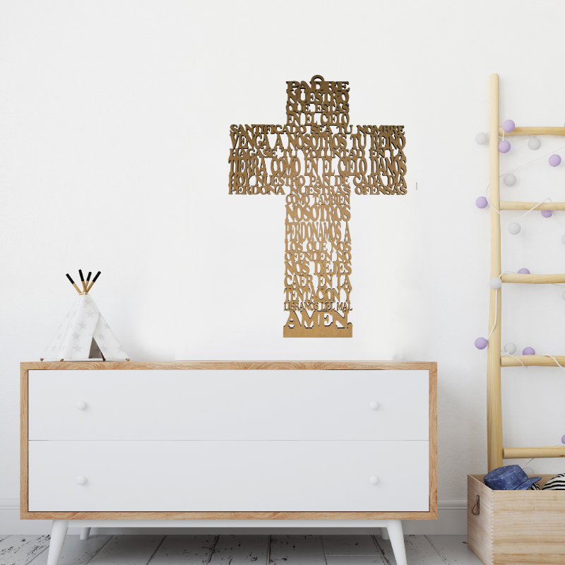 Figura troquelada con la oración del Padre Nuestro en material MDF altura 54 centímetros y ancho 38 centímetros. Puedes adicionar una caja con impresión personalizada para armar un hermoso regalo personalizado a tu ser querido (costo adicional por la caja)