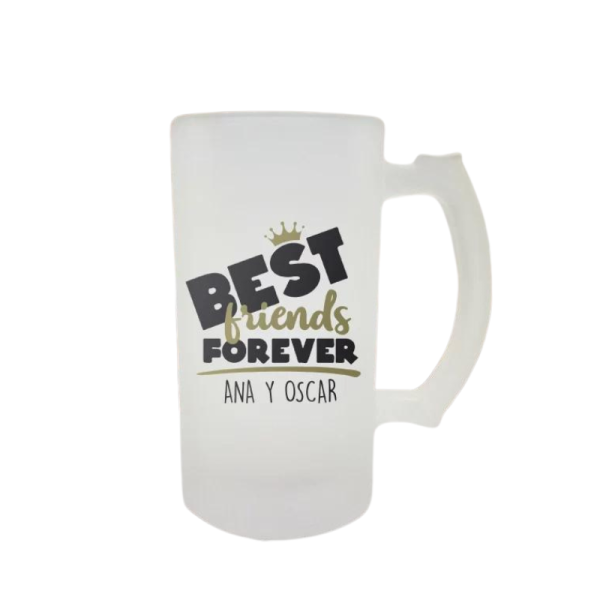 Jarra de vidrio nevada personalizada de 16 onzas. Ideal para colocar una frase, el logo de tu equipo o la marca de tu bebida favorita.